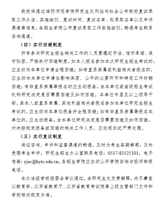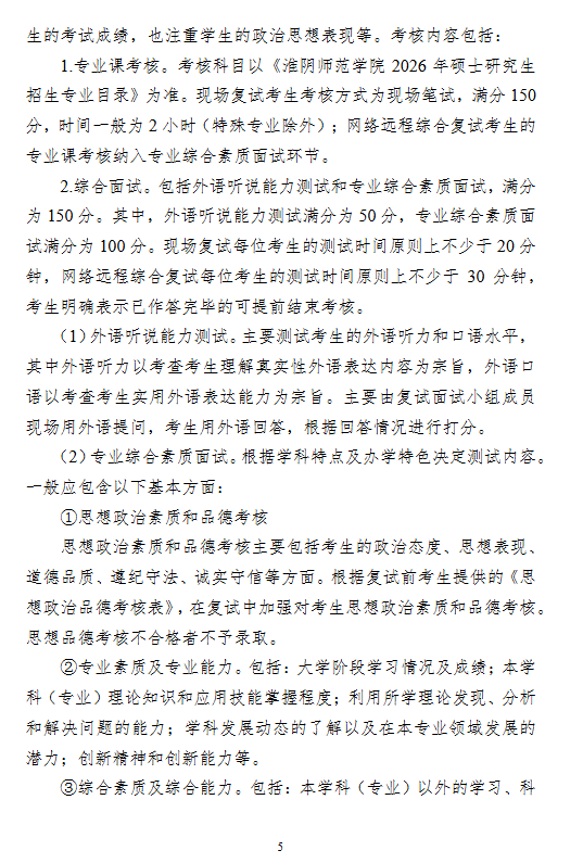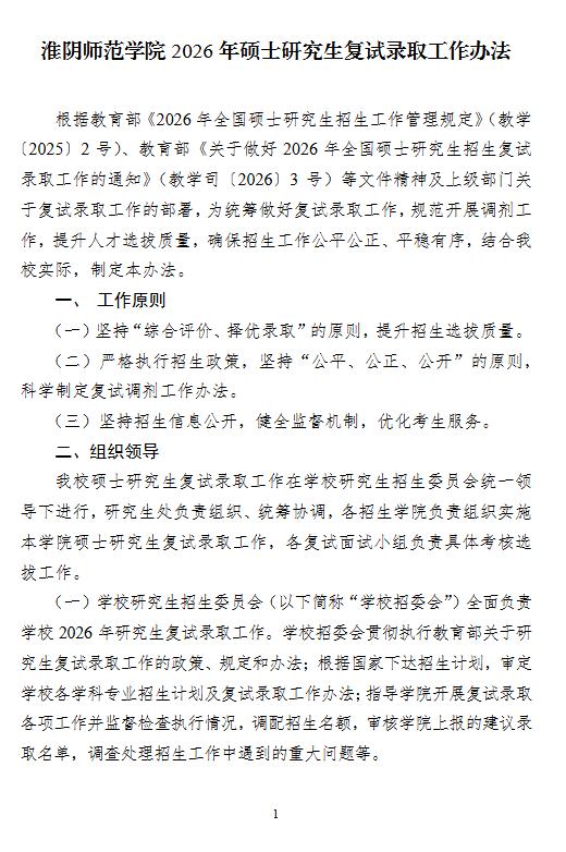 淮阴师范学院2026年硕士研究生复试录取工作办法