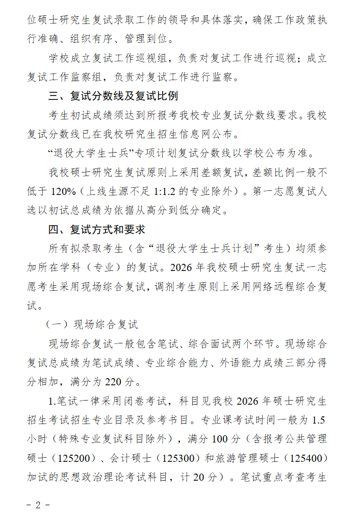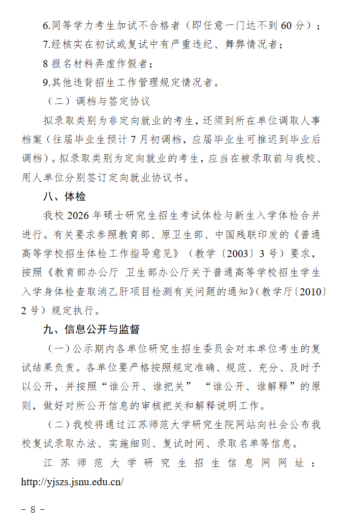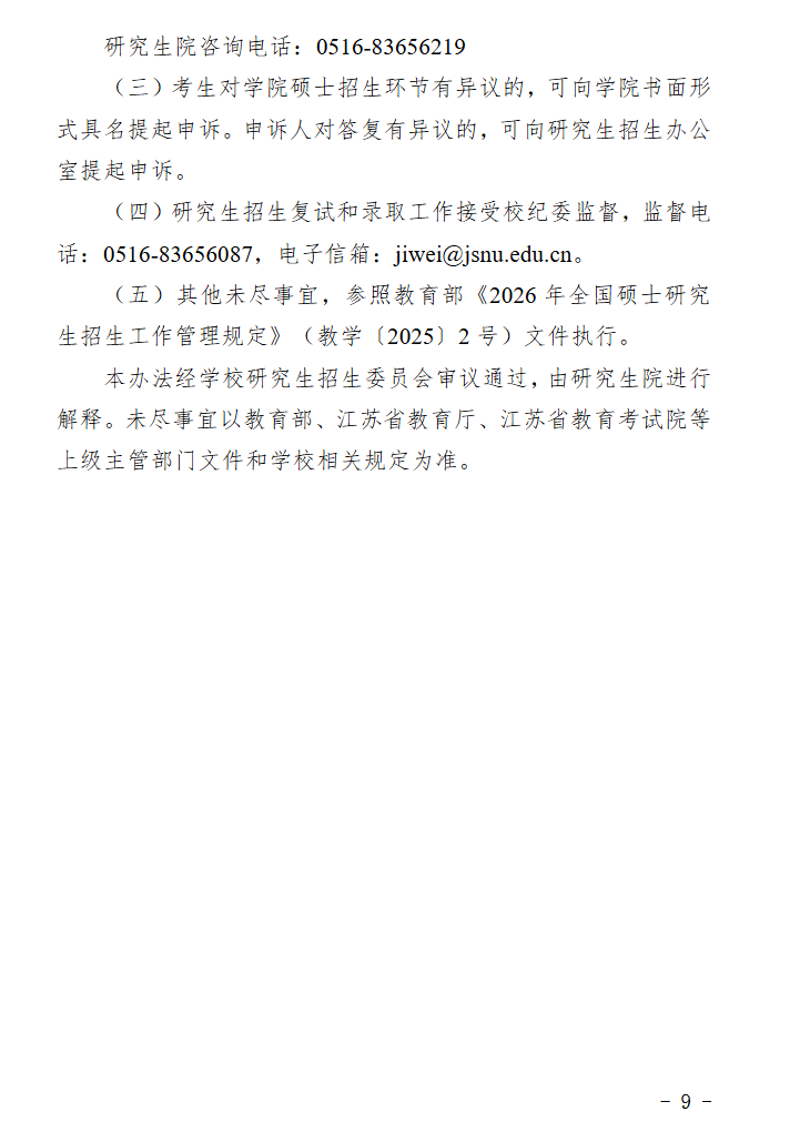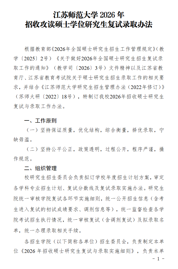 江苏师范大学2026年招收攻读硕士学位研究生复试录取办法
