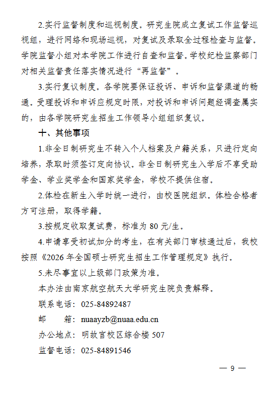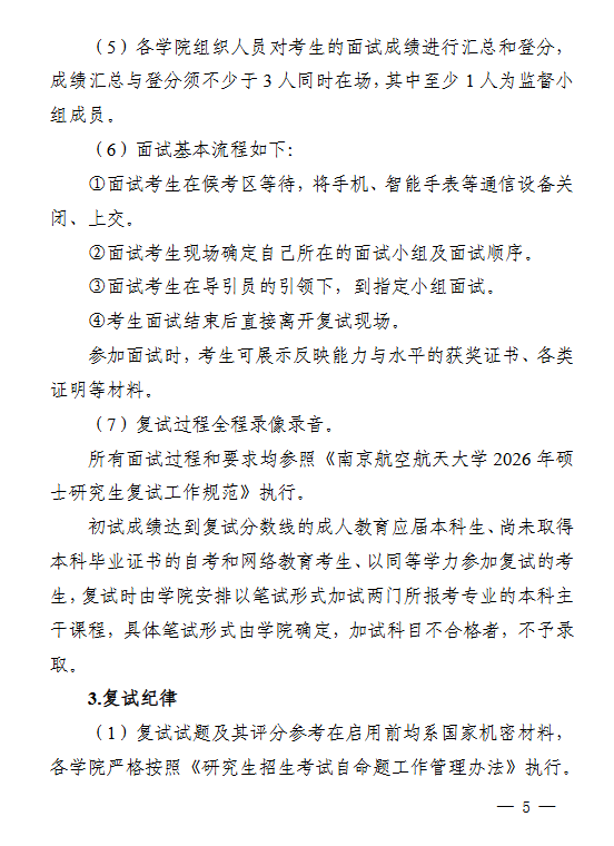 南京航空航天大学2026年硕士研究生招生复试及录取办法