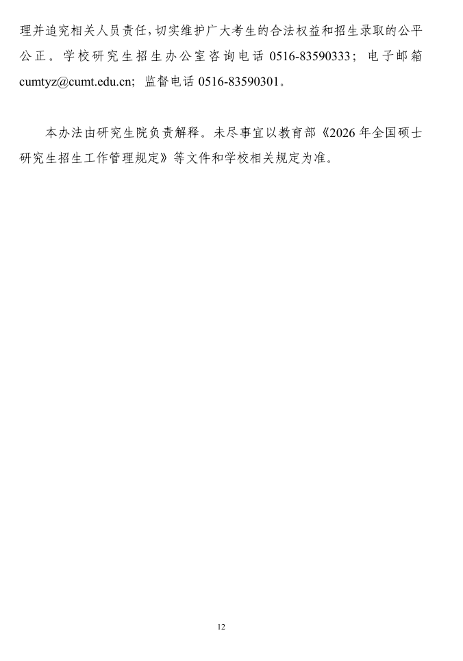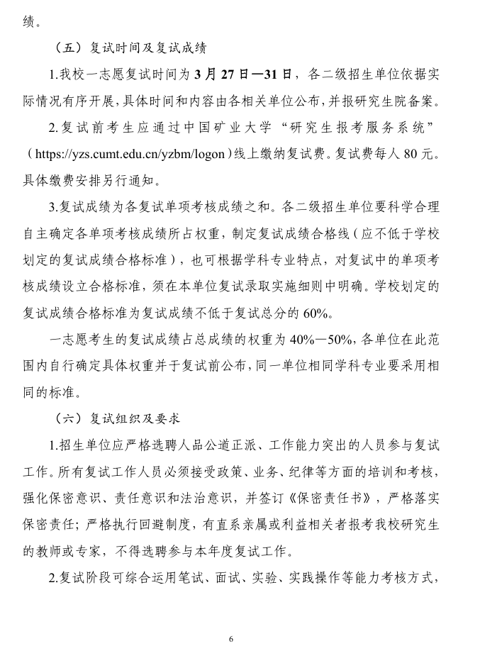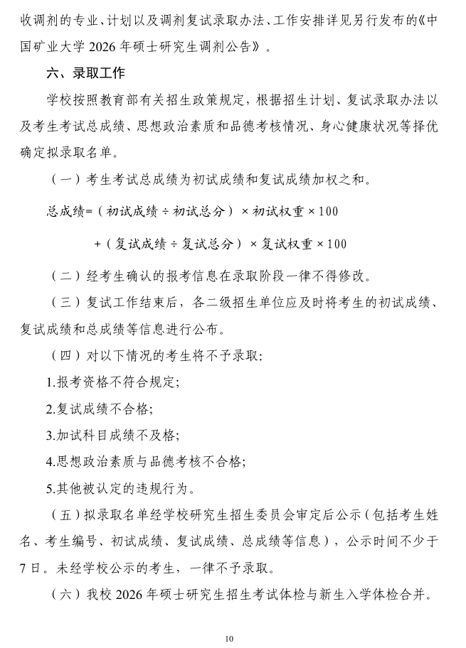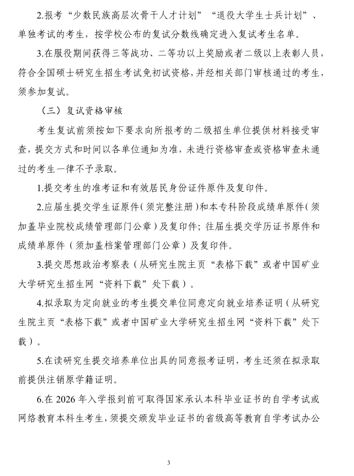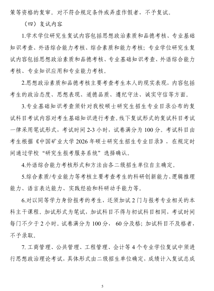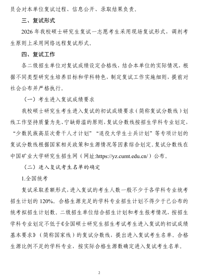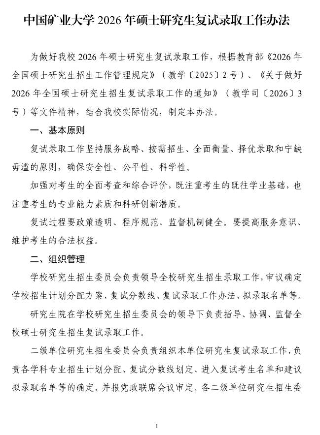 中国矿业大学2026年硕士研究生复试录取工作办法