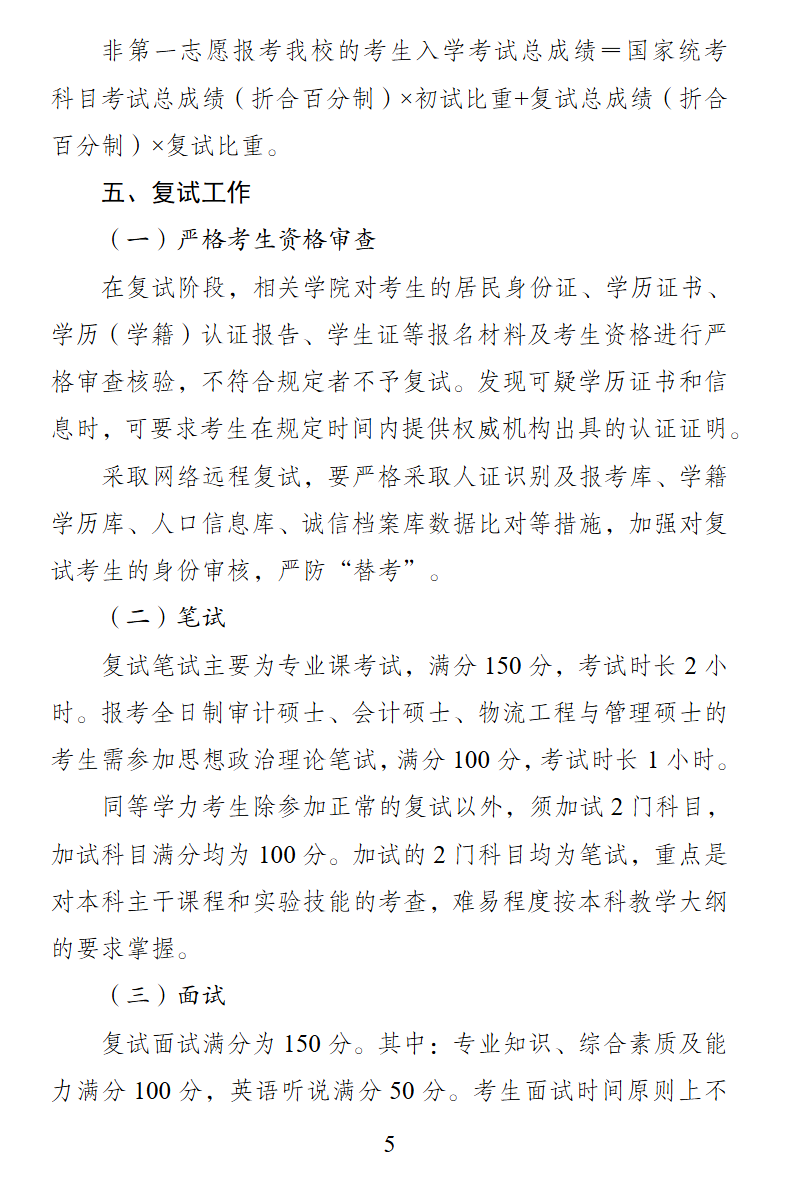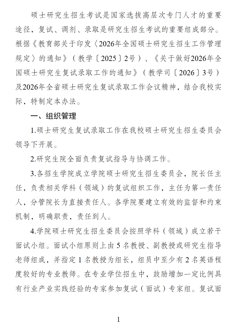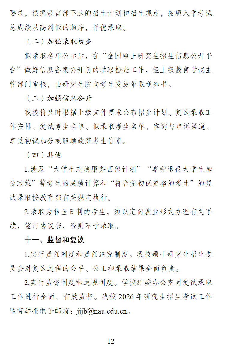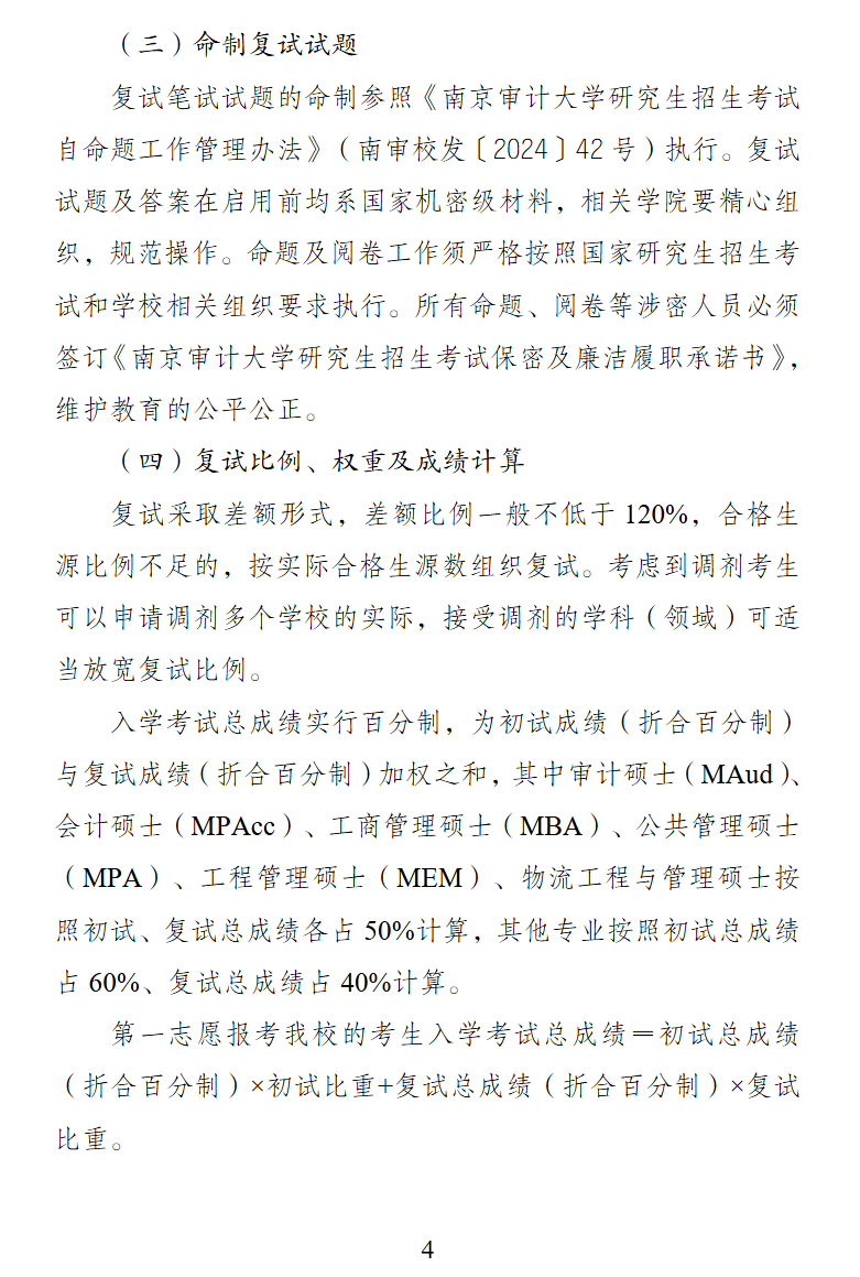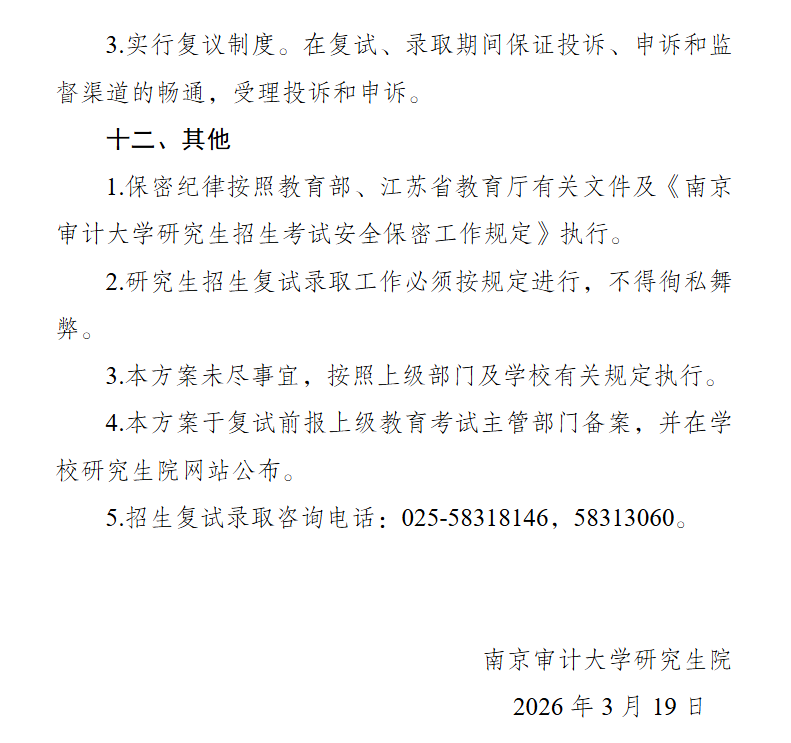 南京审计大学2026年硕士研究生招生复试录取工作方案